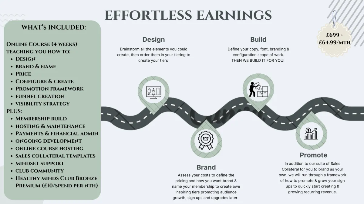 £64.99 Monthly Fee kicks in when your membership is built & ready to sell & you will be invoiced monthly by our team.